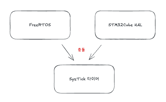 문제가 되는 부분은 FreeRTOS 커널도 ARM Cortex-Mx 프로세서의 내부 SysTick 타이머를 time-base(시간 기준)으로 사용한다는 것입니다. FreeRTOS 커널이 SysTick 타이머를 이용해 태스크 지연 구현, 다른 간격으로 태스크 스케줄링, 미리 정의된 간격으로 스케줄러 실행 등 다양한 타이밍 관련 기능을 구현하는 데 사용됩니다.
