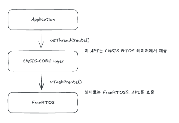 ARM에서 만든 표준 규격으로, 어떤 RTOS를 사용하든 개발자가 동일한 함수명으로 코딩할 수 있게 해주는 추상화 계층입니다.