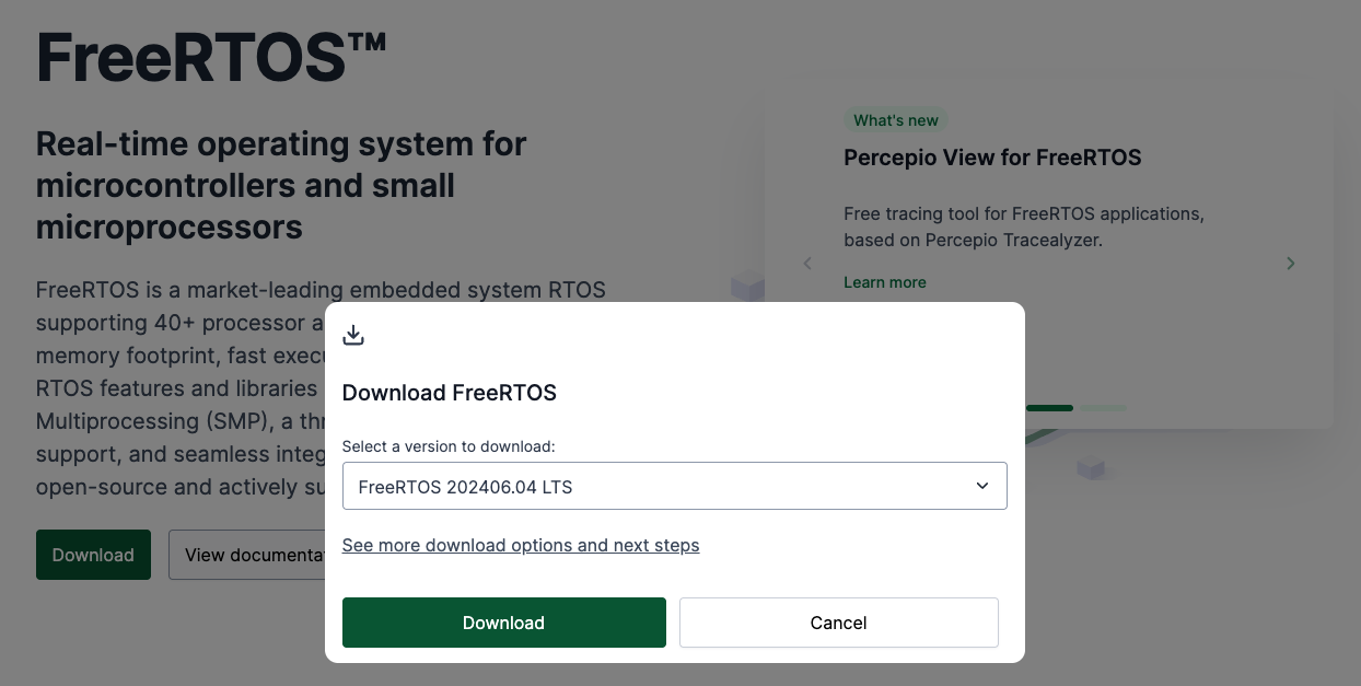 이제, FreeRTOS 커널을 다운로드해봅시다. freertos.org 를 접속해봅니다.