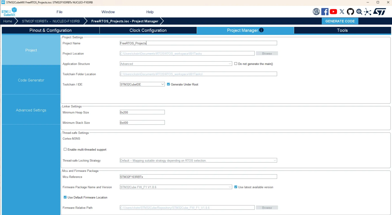 이것은 STM32CubeMX를 이용해 기존 STM32 프로젝트에 FreeRTOS 커널을 직접 추가하는 방법을 보여드리기 위한 것입니다. 단지 추가 정보일 뿐입니다. 프로젝트에 FreeRTOS를 이미 수동으로 통합했다면 그냥 이런 방법도 있구나 하고 넘어가시면 됩니다.