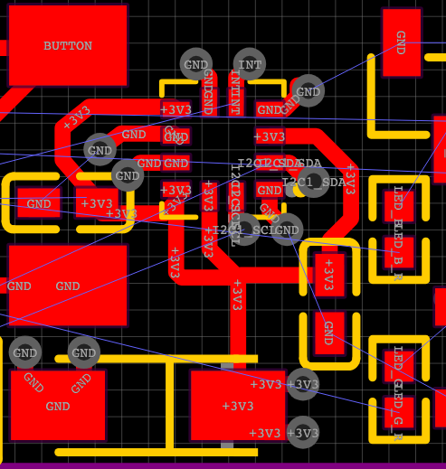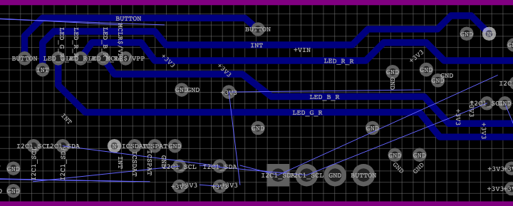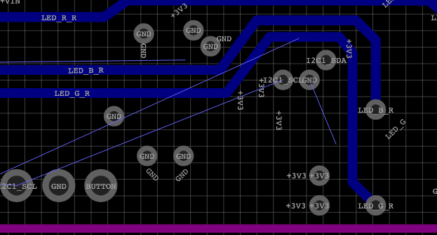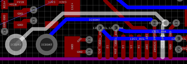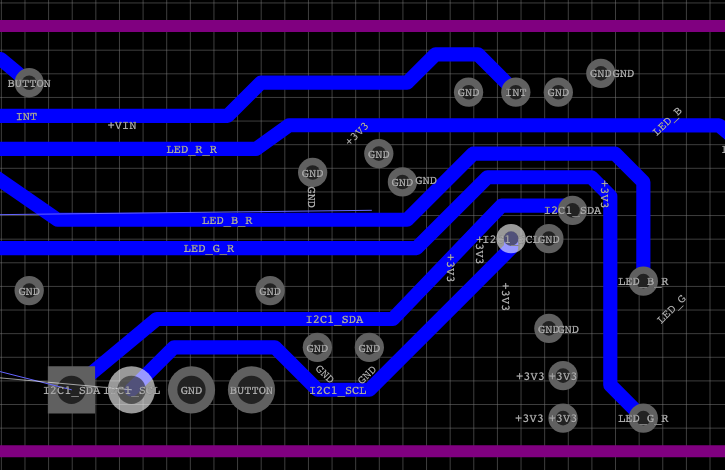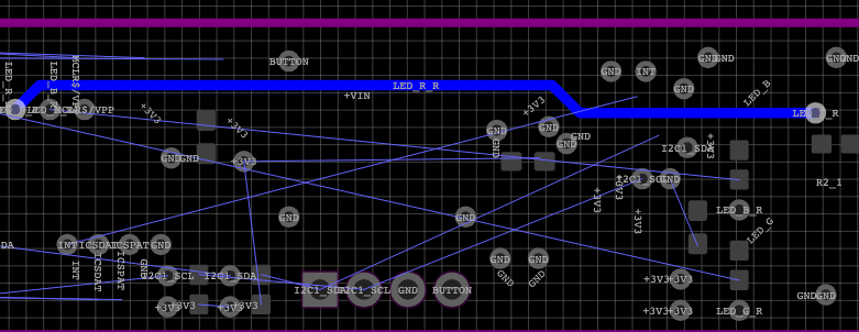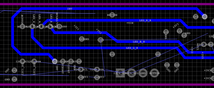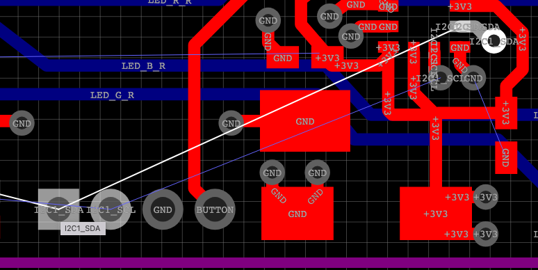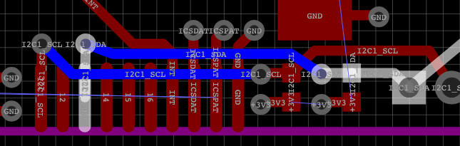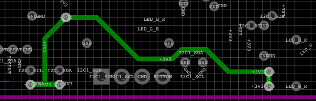 탑 레이어에서는 이 I2C 풀업 저항들을 연결할 수 있습니다. 바텀 레이어에서 이어서 이 풀업들을 마이크로컨트롤러에 연결할 수 있습니다.
