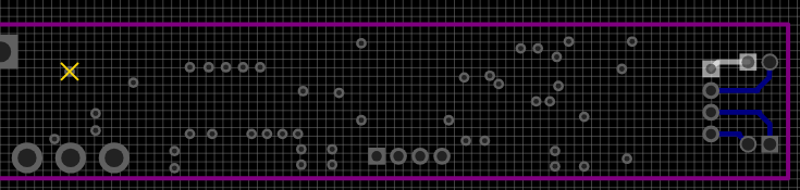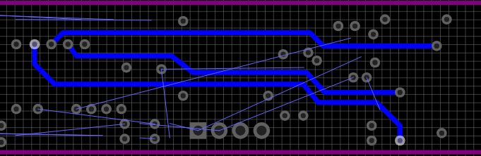 우리가 할 일은 PCB의 바텀 면 대부분을 수평 트랙(가로 선)을 위해 사용할 겁니다. PCB 바텀 면에 수직 트랙(세로 선)을 그리지 않을 겁니다. 수평으로 배선하고, 그리고 여기 어디쯤에서 레이어를 바꾼 다음, 탑 레이어에서 이어서 트랙을 수직으로 배선할 겁니다. 그러면 PCB 바텀 면에 다른 트랙들을 배선할 공간이 많이 생기게 되죠.