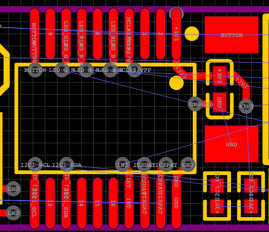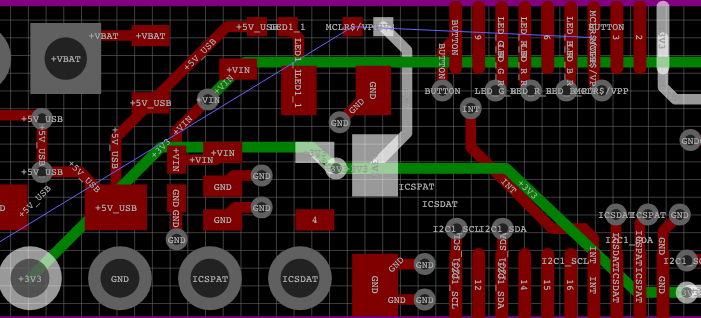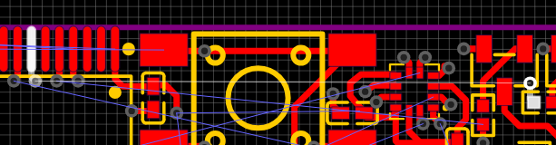 다음으로, 마이크로컨트롤러를 팬아웃(fan out)할 것입니다. 탑 레이어에 짧은 트랙을 그리고 비아를 배치할 겁니다.