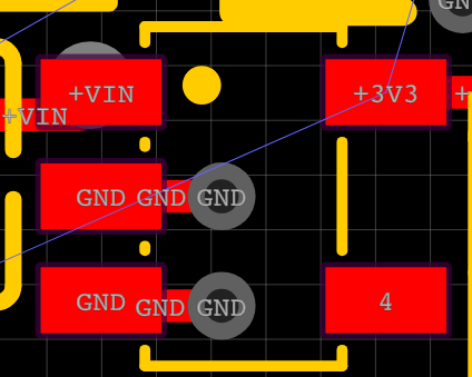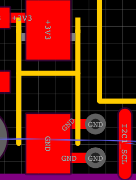GND는 보통 PCB 하단 전체 Plane으로 처리됩니다. 따라서 Top Layer에 있는 GND 패드들을 Bottom GND Plane과 연결하려면 via가 필요합니다. 반대로 +3V3은 Plane으로 처리하지 않고, 트레이스로만 연결하는 경우가 많습니다.