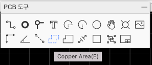 그라운드 넷에 연결하고 싶습니다. 근데 PCB 가장자리부터 구리를 그리고 싶지는 않을 겁니다. 안쪽으로 조금 옮겨서 이렇게 그릴 겁니다.