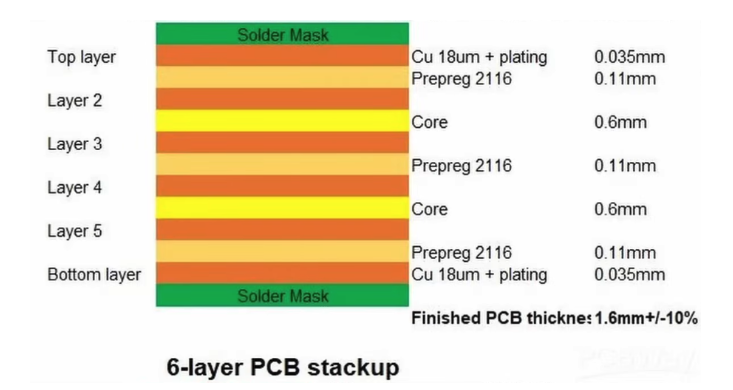 기본적으로 PCB 안에 있는 모든 구리 레이어를 생각해 보면 됩니다. 예를 들어 8층 보드(8-layer board) 라면 그 안에는 8개의 구리 레이어가 있습니다. 그리고 각 레이어의 구리 두께를 개별적으로 지정할 수 있습니다. 이것을 PCB 스택업(stack-up) 이라고 합니다.