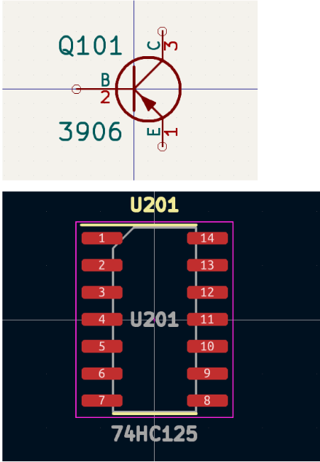 선택한 객체는 M키를 눌러 이동하고 R키를 눌러 회전합니다. G를 사용하여 객체를 이동할 수도 있습니다. 연결되지 않은 심볼을 이동할 때는 G와 M이 동일하게 동작하지만, 와이어가 연결된 심볼의 경우 G는 심볼을 이동하고 와이어는 연결된 상태를 유지하며, M은 심볼을 이동하고 와이어는 그대로 둡니다.