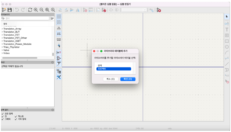 새 심볼이나 풋프린트를 그리는 첫 번째 단계는 저장할 라이브러리를 선택하는 것입니다. 이 가이드에서는 스위치 심볼과 풋프린트를 새 프로젝트별 라이브러리에 저장합니다.
