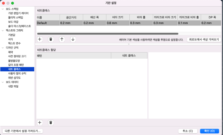 이 설계에서는 네트 클래스가 지정되지 않았으므로 모든 네트가 Default 네트 클래스에 속합니다.