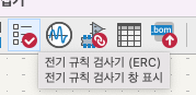 상단 도구 모음에서 "전기 규칙 검사기(ERC)" 버튼을 클릭한 다음 ERC 실행을 클릭 하여 전기 규칙 검사를 실행합니다.