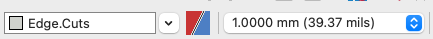 이제 세 개의 구성 요소가 배치되었지만, 보드 자체는 정의되지 않았습니다. "Edge.Cuts 레이어"에 보드 윤곽선을 그려 보드를 정의합니다. 보드 외곽선을 굵은 격자로 그리면 보드 크기에 맞는 정확한 숫자를 쉽게 얻을 수 있어 유용합니다. 캔버스 위의 격자 드롭다운 메뉴에서 1mm를 선택하여 굵은 격자로 전환하세요.