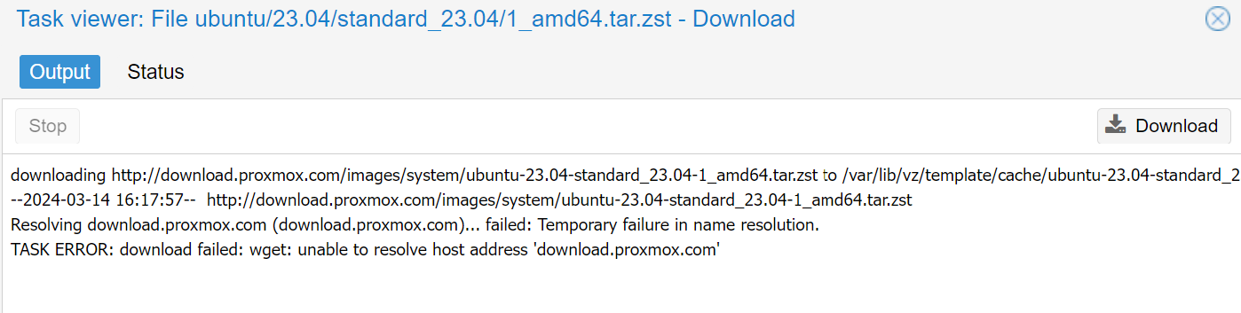 참고 사이트 : https://forum.proxmox.com/threads/cannot-download-container-templates.58723/