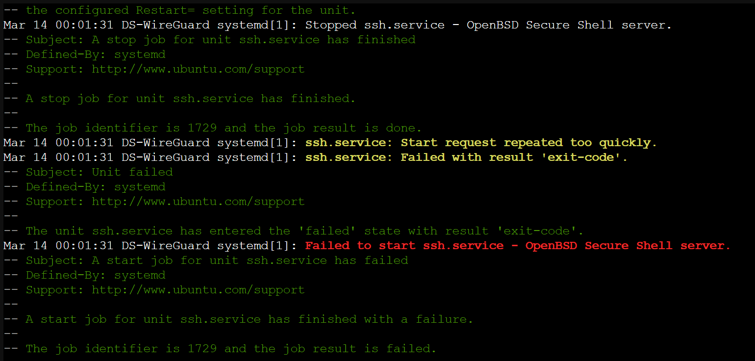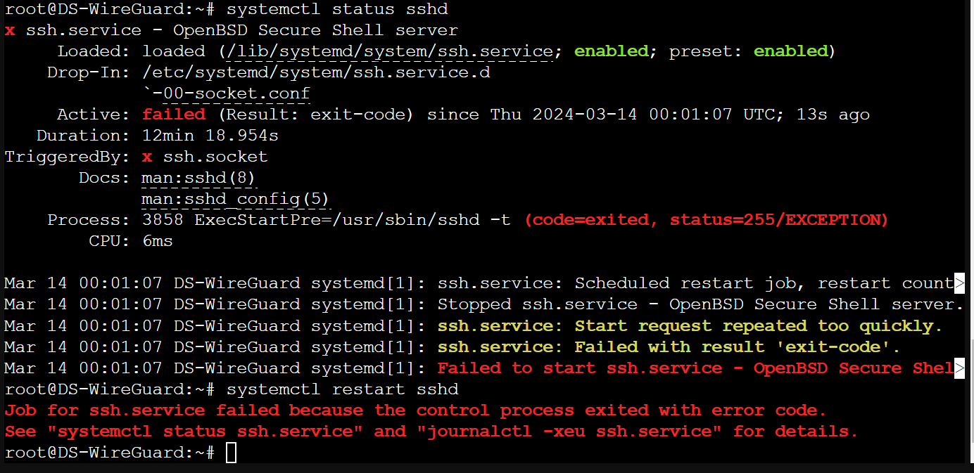 해결이 되는가 싶었으나... ssh 서비스 재시작 에러가 발생이 되었다.