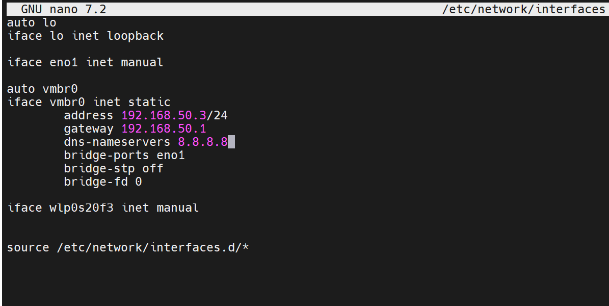 nano에디터로 게이트웨이 아래에 dns 경로를 추가 해 주었다.