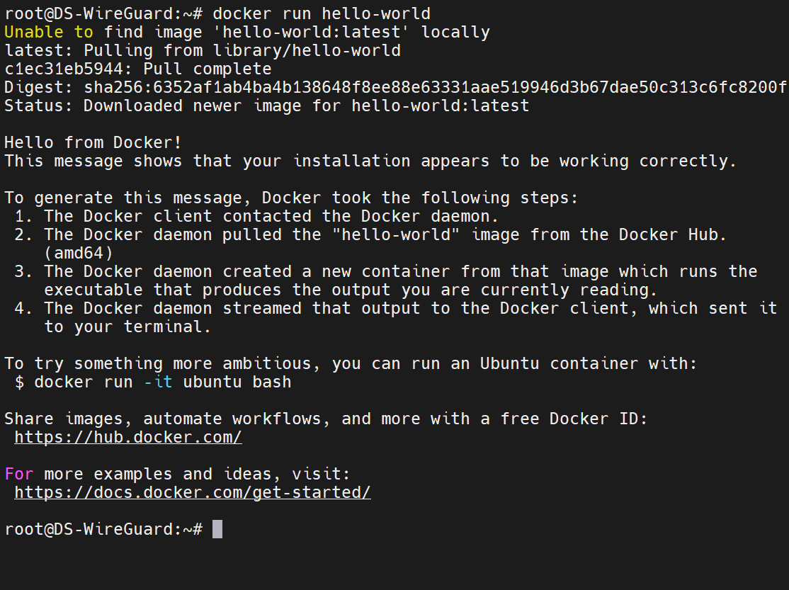 잘 설치 되었는지 hello-world 이미지 불러오기