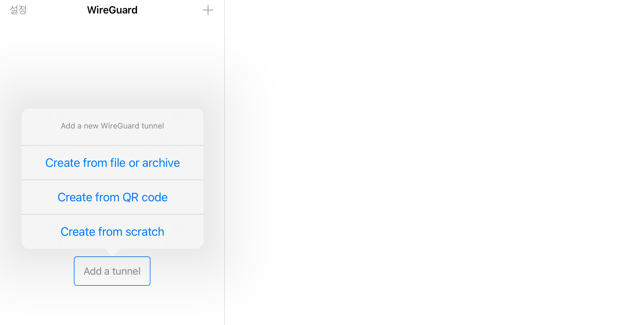 QR코드 생성 > 기기에서 Wireguard 어플실행 > QR코드 인식