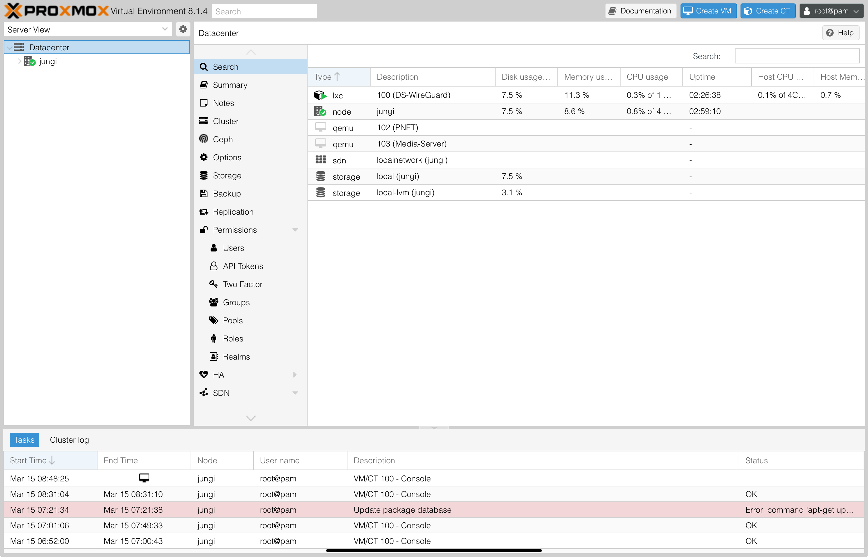 내부 ip 주소로 proxmox에 정상적으로 접속 되었다.