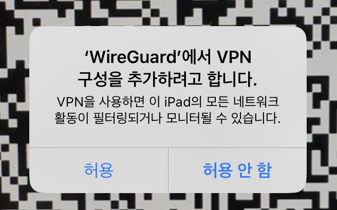 - QR코드 생성하여 와이어가드에 추가 (in ipad)