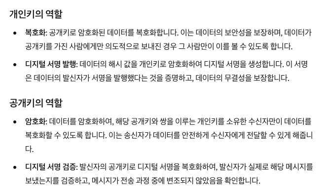 그리고 개인키는 디지털 서명 생성할 때도 사용함.