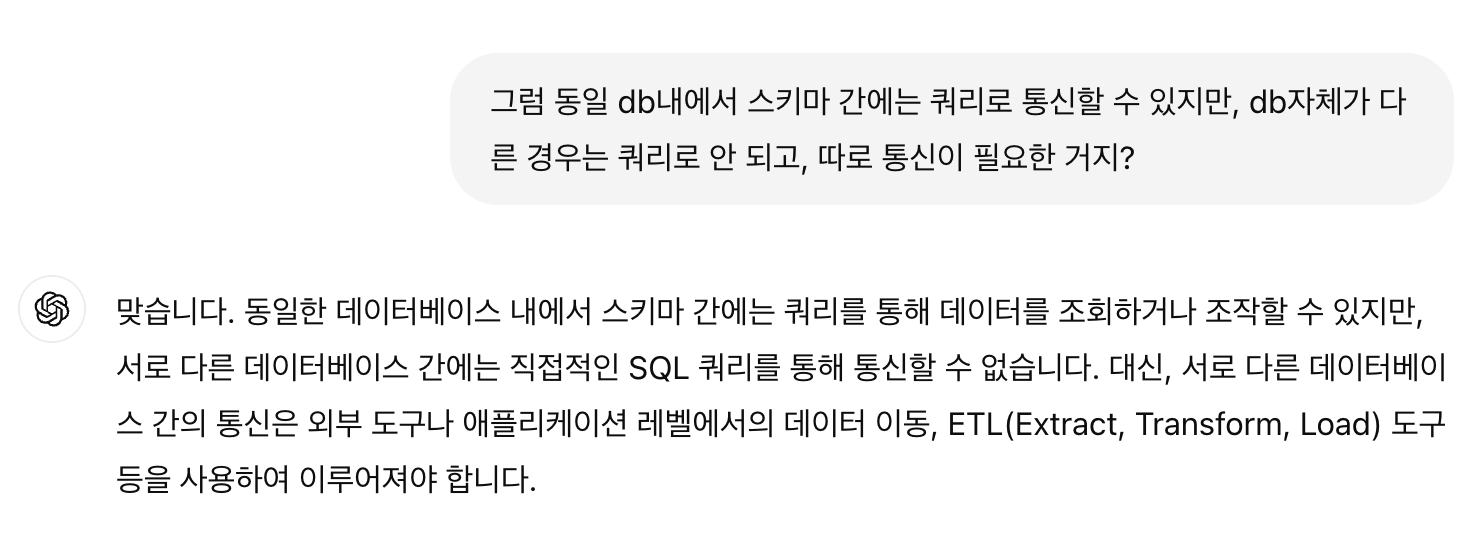 DB가 물리적 구분이라면 스키마는 논리적 구분 같은 느낌?