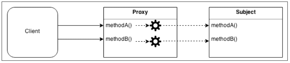 Proxy의 메소드 안에서는 Subject의 메소드를 호출하고 그 반환값을 변경하지 않고 그대로 반환하는데, Subject의 메소드가 호출되는 부분 앞뒤로 다른 작업을 할 수가 있다.