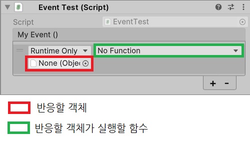 다만 델리게이트와 달리 유니티이벤트는 유니티 에디터에서 시각적으로 보거나