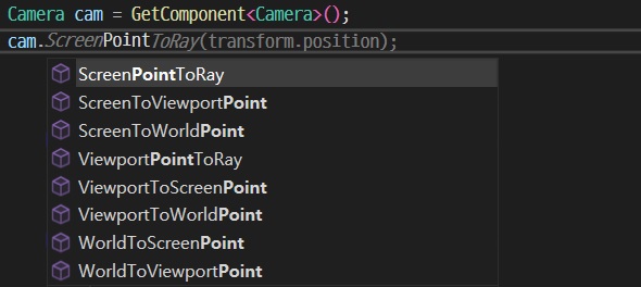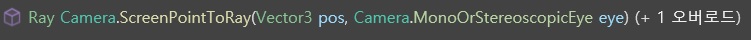 이때 사용하는 것이 ScreenPointToRay() 함수이며,