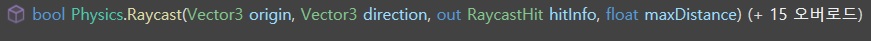 자주 사용하는 Raycast()는 오버로딩이 많이 되어있는데 그 중 위의 매개변수는