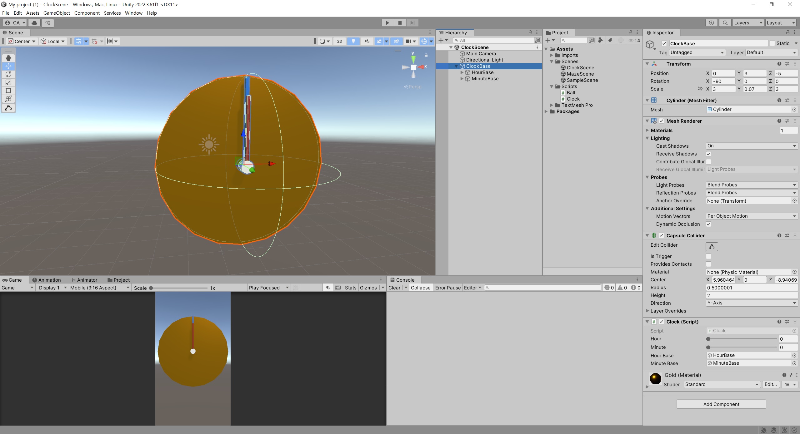 현재 구현한 시계는 시침과 분침의 transform.rotation y값만 변하면 되기 때문에