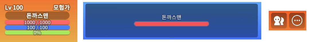 ํ๋ ์ด์ด์ ๋ณด, ํ๋ ์ด์ด ์ฒด๋ ฅ๋ฐ, ๋ฉ๋ด๋ฒํผ๋ค์ UI๋ผ๊ณ ํ ์ ์๋ค.