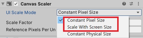 UI Scale Mode์๋ ์ด 3๊ฐ์ง๊ฐ ์์ง๋ง 2๊ฐ์ง๋ง ์์๋ณด์.