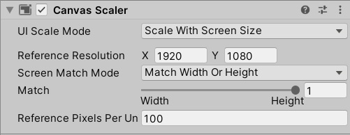 ์ด๋ ์ฌ์ฉํ๋ ๊ฒ์ด Canvas Scaler ์ปดํฌ๋ํธ๋ค.