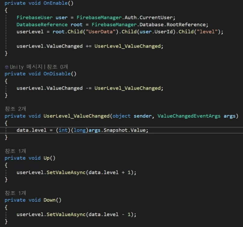 그 이후부터는 값이 변경되었을 때마다 SetValueAsync() 함수로 서버에 변경을 신청하면