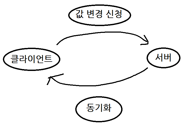 서버에서는 값을 수정하게 되고 동기화가 된다.