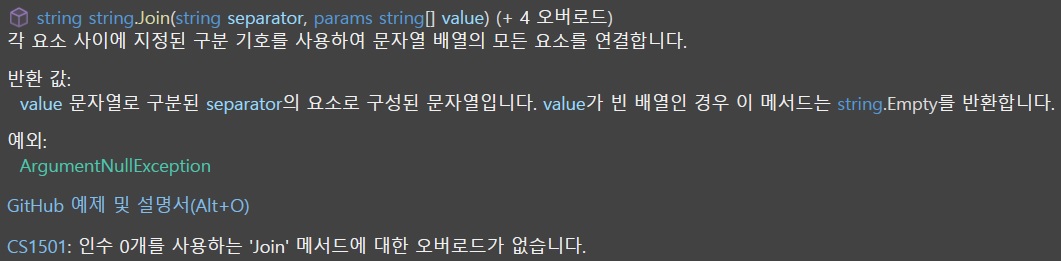 string joinTest = string.Join(", ", "가", "나", "다");