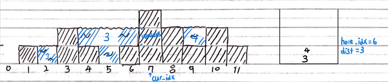 waters = min(height[cur_idx], height[idx_stack[-1]]) - height[hole_idx]