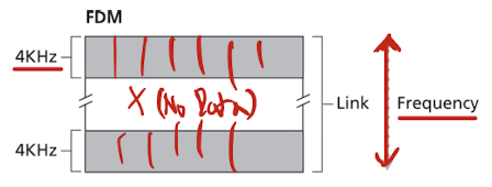 Frequency division multiplexing이라는 서로 다른 chanel들이 서로 다른 대역폭에서 전송되는 방식이다.
