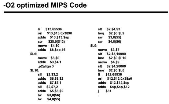 - O or O1 : code size와 excution time을 줄인다. comilation time은 고려하지 않는다.