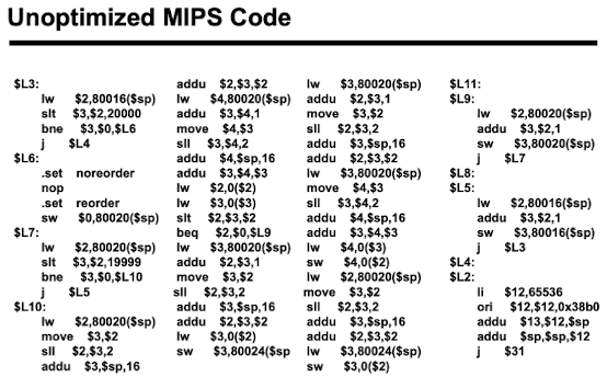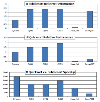 다음은 Bubble Sort의 예제롤 각 코드를 Compile 했을 때의 결과이다.