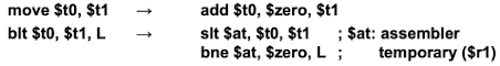 - Load imeediate(li) 32-bit의 constants 32-bit의 숫자를 가지고 오도록 하는 명령어지만 assembler는 이를 필요하다면 lui + ori 두개의 명령어로 수행하도록 해석한다.