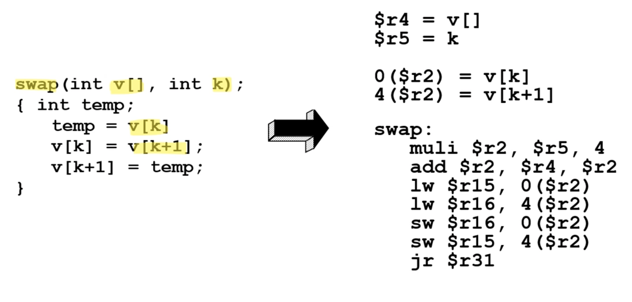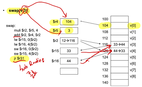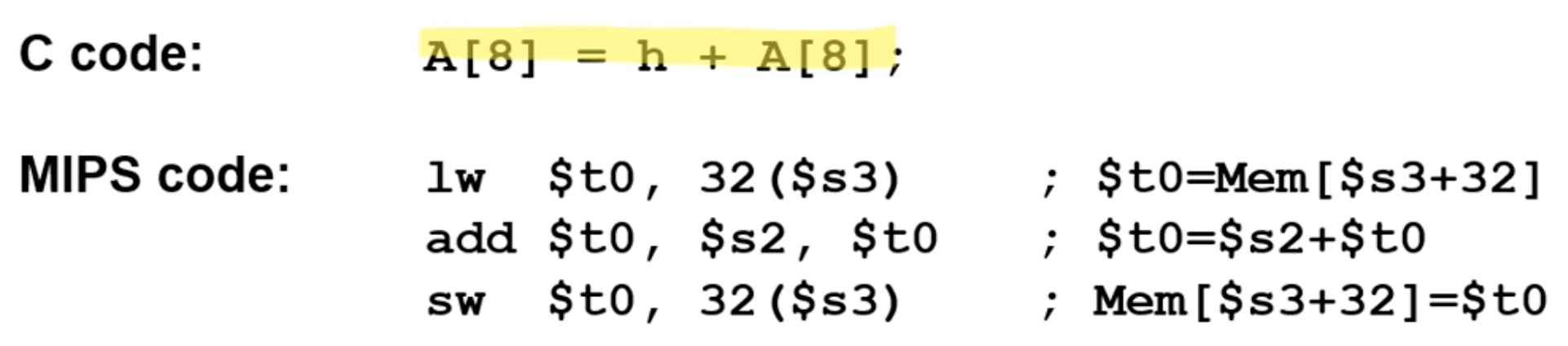 - loads and store을 사용하여 변수들을 registers와 memory사이를 이동시킨다.