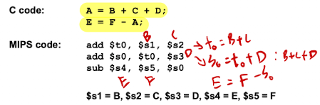 - MIPS에서 arithmetic은 registers 에서만 동작한다.