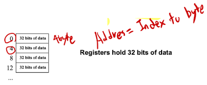- "Byte addressing"을 사용한다. 이는 index를 가르킬때 byte 단위의 memory 접근을 의미한다.