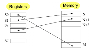 - Compiler는 registers에서 자주 사용되는 변수들을 지속적으로 유지하기를 시도하고 나머지를 메모리에 배치시킨다.