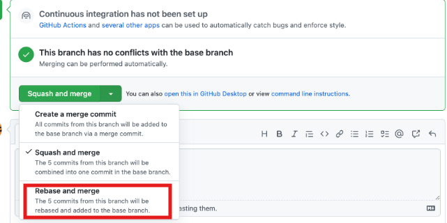 아래 사진과 같이 Rebase로 Merge 가능하다.