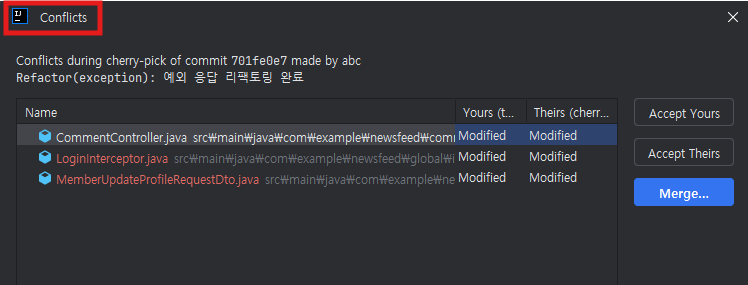를 했을 때, Successfully가 뜨면 충돌 해결