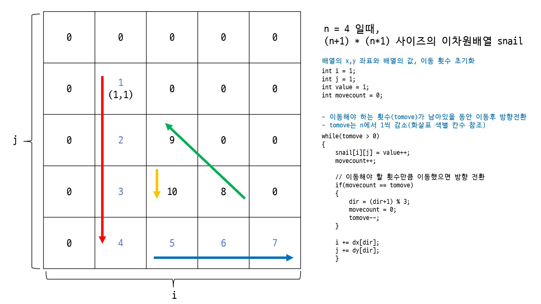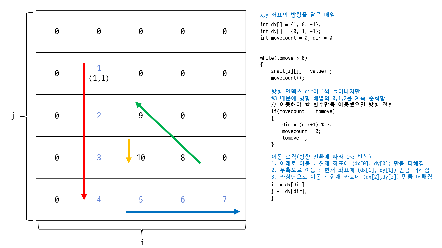 int i = 1, j = 1, value = 1;// x좌표, y좌표, 배열에 들어갈 값