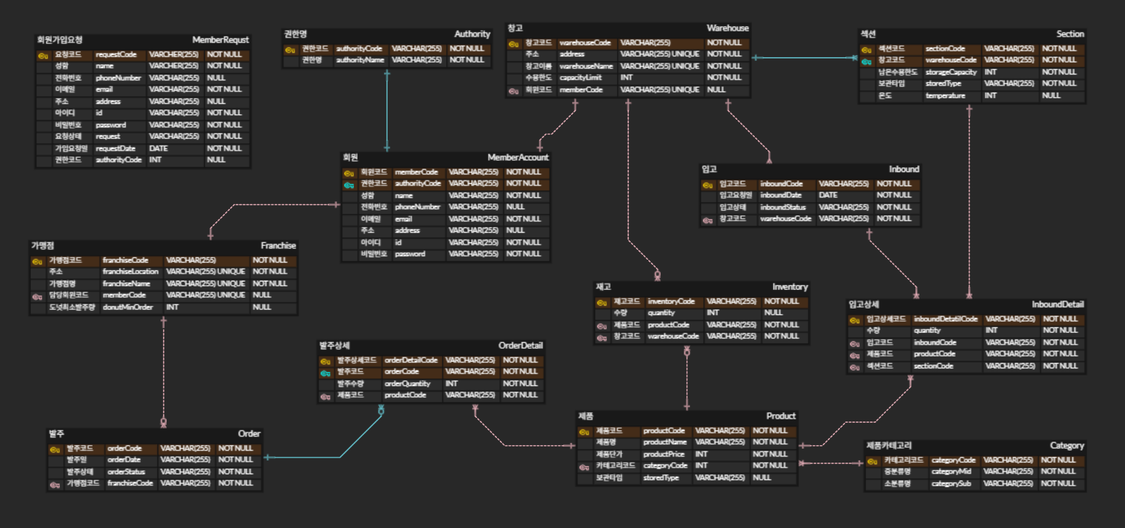 - 권한별 업무 분리 및 사용자 인증 처리 본사·창고·가맹점 역할을 구분하고, Spring Security 기반 인증·인가 기능 직접 구현