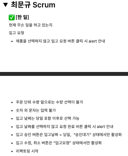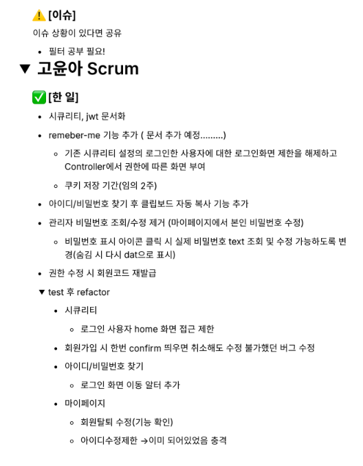 회의록 : 애자일 스크럼과 Notion으로 일정을 공유해 협업 효율과 개발 완성도를 높였습니다.