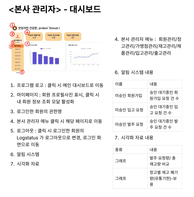 - 가맹점 중심의 발주 시스템 구현 점포별 발주 요청 → 창고 관리자 승인 → 출고까지 이어지는 전산화된 물류 흐름 구축